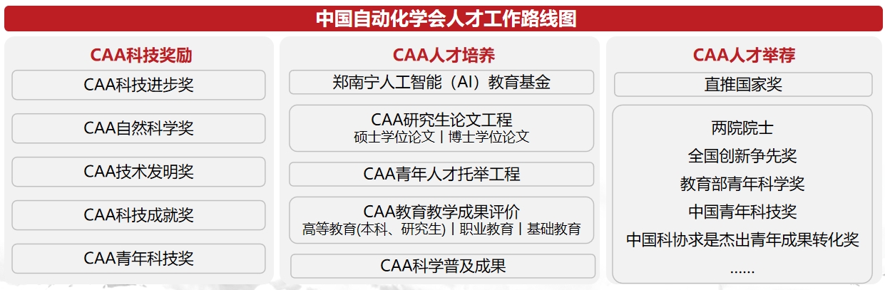 中国自动化学会不断完善评价奖励制度,持续优化人才成长环境,建立三位一体的人才工作路线图,打通人才培育、服务和举荐体系,以高质量人才自主培养实现自动化高水平自立自强。