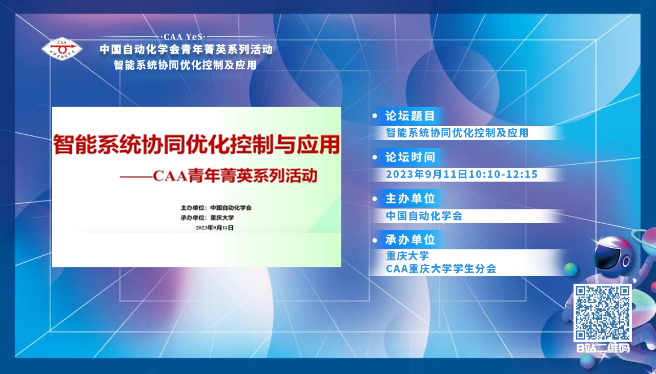 【视频回放】中国自动化学会青年菁英论坛:智能系统协同优化控制及应用