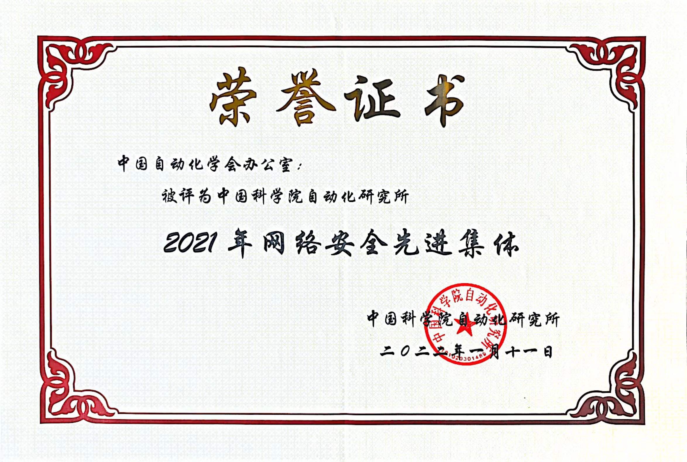 近日,中国科学院自动化研究所为表彰先进,网络安全与信息化工作领导小组发表了“关于表彰2021年度网络安全先进集体与先进个人的决定”,决定对2021年度认真贯彻落实网络安全和信息化工作相关法律、法规和政策,在维护研究所网络安全中做出显著贡献的科研部门/团队授予“中国科学院自动化研究所2021年网络安全先进集体”荣誉称号,并对做出显著贡献的个人授予“中国科学院自动化研究所2021年网络安全先进个人”荣