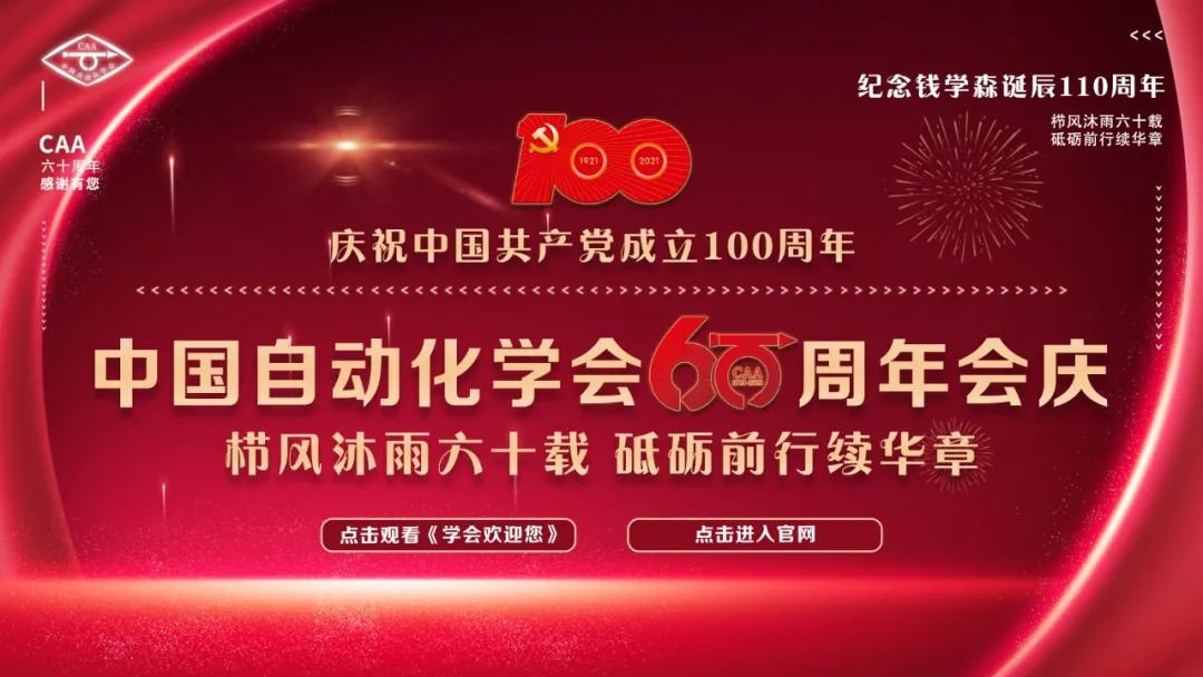 2021是中国共产党成立100周年、是“两个一百年”奋斗目标的历史交汇点、是“十四五”开局之年,也是中国自动化学会成立60周年、钱学森先生诞辰110周年,在这重要的时间节点,中国自动化学会全体团结一致,以实际行动献礼建党百年!