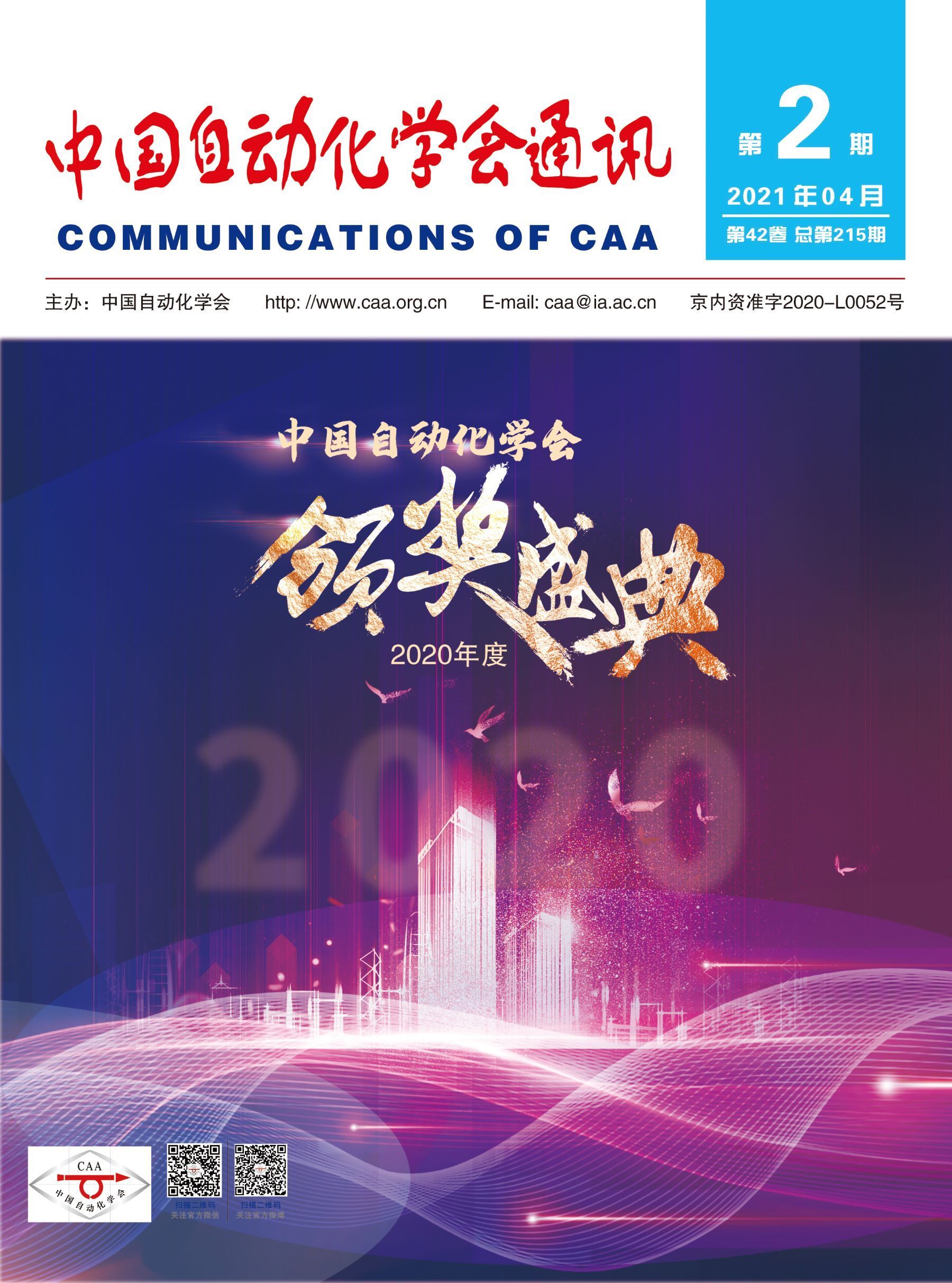 中国自动化学会通讯 2021年4月第2期(第42卷 总第215期)发布,本期专刊聚焦2020年度中国自动化学会颁奖盛典,精彩内容,敬请关注!