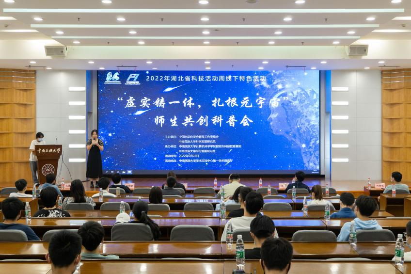 5月22日,由中国自动化学会普及工作委员会和中南民族大学科学研究发展院主办、智能车科普教育基地和平行智能研习社承办的“虚实铸一体,扎根元宇宙”师生共创科普会在学术交流中心举行。此次科普会是中南民族大学计算机科学学院智能车科普教育基地作为中国自动化学会科普教育基地的2022年度重点工作之一,来自中南民族大学计算机科学学院、文传学院、现教中心的众多师生参与此次活动。