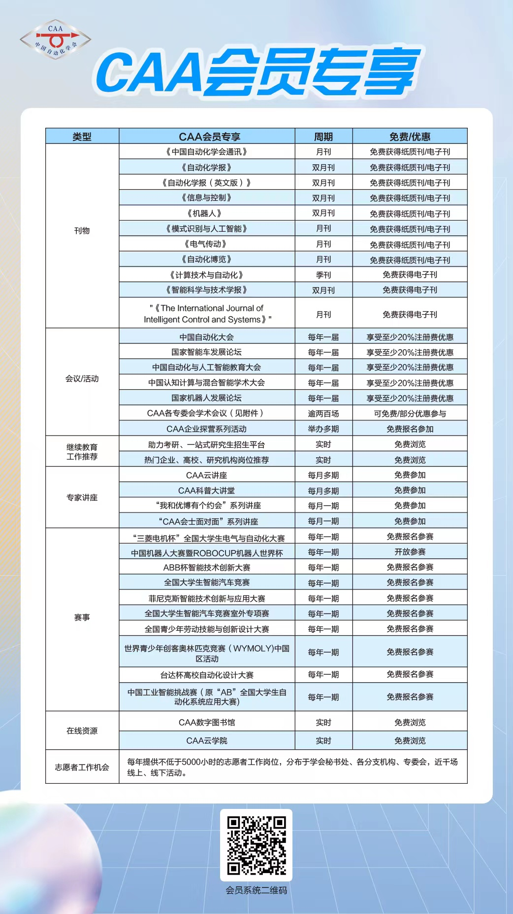 加入中国自动化学会,您将获得以下会员专属权益:
