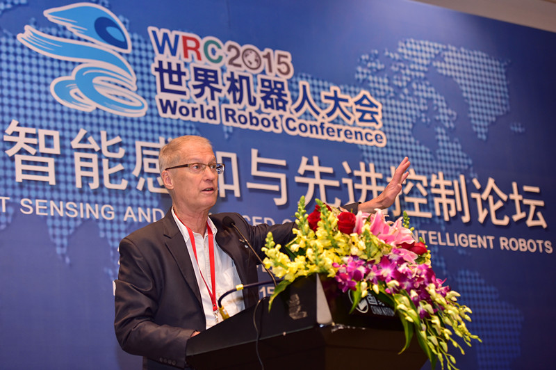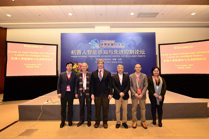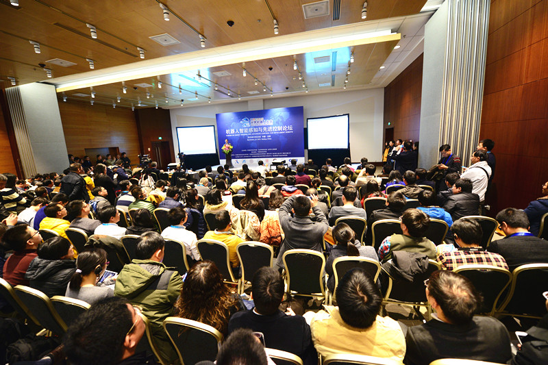 为贯彻落实习总书记在2014年两院院士大会讲话中的重要指示精神,积极推动我国机器人技术与产业的跨越发展,中国科学技术协会、工业和信息化部和北京市人民政府于2015年11月23日至25日在国家会议中心(北京)共同主办了主题为“协同融合共赢,引领智能社会”的2015世界机器人大会。大会由2015世界机器人论坛、2015世界机器人博览会、2015世界青少年机器人邀请赛三大活动组成。中国自动化学会在继今年春天召开的2015年国家机器人发展论坛的基础之上,在中国科协的指导下,充分发挥自身学科优势和人才优势,于2015年11月24日承办了“机器人智能感知与先进控制”专题论坛。本次论坛安排了6个特邀主题报告,并设置了互动交流环节,邀请了来自瑞士、美国、韩国的知名学者与中国学者共同探讨有关机器人智能感知与先进控制方面的最新进展和研究成果,会场更是被热情高昂的参会者挤得水泄不通,反响十分热烈,整场论坛座无虚席,气氛持续高涨。与此同时,学会还通过微博平台第一时间对论坛现场进行了直播。