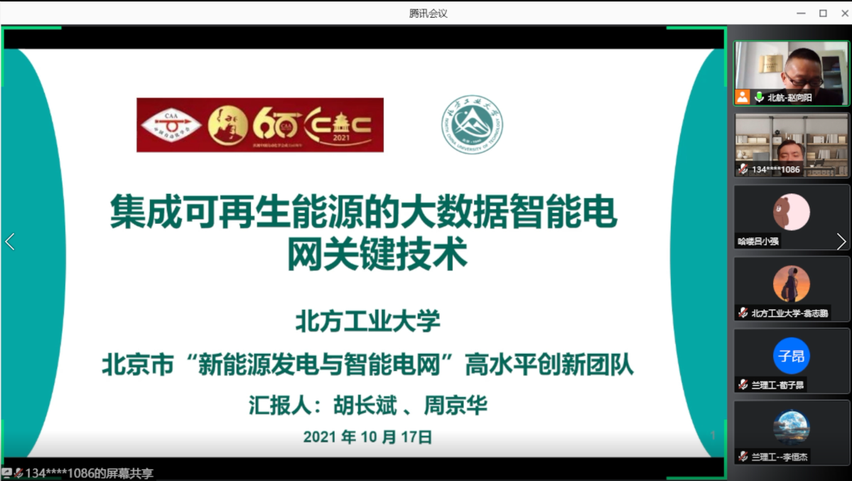 北方工业大学胡长斌副教授和周京华教授,汇报题目为“集成可再生能源的大数据智能电网关键技术”,从集成可再生能源的智能电网关键技术出发,深入探讨高比例新能源系统惯量低、多能流交互作用、源网荷频繁互动、耦合协调运行困难、运行场景复杂、用户定制化需求高等核心难题,重点介绍了新能源微电网在发/输/配/用系统中的关键作用,分析和讲述了微电网物理系统稳态分散与动态互联机理建模等问题。并对团队的应用案例进行了介绍,展示了团队在微电网应用方面的具体成果,展望了未来微电网运行控制及未来能源高效利用的发展趋势。赵向阳副教授赞扬了该团队作为北京市新能源发电与智能电网高水平创新团队的实干创新力量,从设备底层开发到系统控制、从科研到教学领域等做了很多踏实工作,并希望团队攻克更多技术难题。