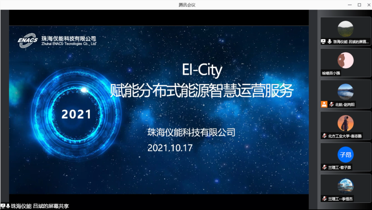 珠海仪能科技有限公司吕斌博士作题为“EI-City赋能分布式能源智慧运营服务”的报告。吕博士首先回顾10多年来仪能科技耕耘分布式能源的进程,其中伴随了与智能分布式能源专委会多位委员的项目合作,并就中加能源互联网创新中心及其成员组织的一系列研发成果和项目实践进行了简单介绍,最后重点阐述了仪能科技自主推出的能源互联网智慧运营平台EI-City赋能分布式能源智能运营服务的设计理念、核心技术、商业模式和案例。在互动期间,吕斌博士表达了依托能源互联网智慧运营平台EI-City和实际智慧能源项目助力智能分布式能源专委会科研成果落地应用的倡议,热情欢迎有志于投身绿色能源革命的年轻学子来珠海这个大湾区最有潜力同时幸福指数位列前茅的城市创业。赵向阳副教授进一步说明了吕斌博士十几年来零零散散做了很多分布式能源项目,掌握了很多独特的技术,对分布式能源的现状和发展有很深体会。
