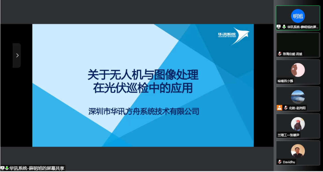 最后一位报告是深圳市华讯方舟系统技术有限公司薛明旭董事长作题为“关于无人机与图像处理在光伏巡检中的应用”的报告。报告就光伏巡检的国内外现状,无人机在光伏巡检中应用的优势及无人机在光伏巡检中涉及的关键技术进行了简要阐述,同时结合实际应用案例对无人机在光伏巡检中的成果进行了总结。