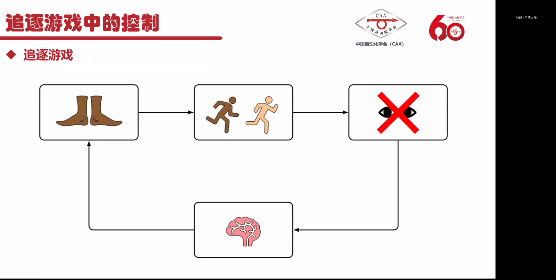 同济大学张皓教授作题为“追逐游戏中的控制”的报告。张皓教授讲解了在追逐游戏中存在的基本控制元素,并讨论在控制系统中,不同控制元素的缺失会引发不同的问题,加深了孩子们对控制系统以及各个元素的了解。