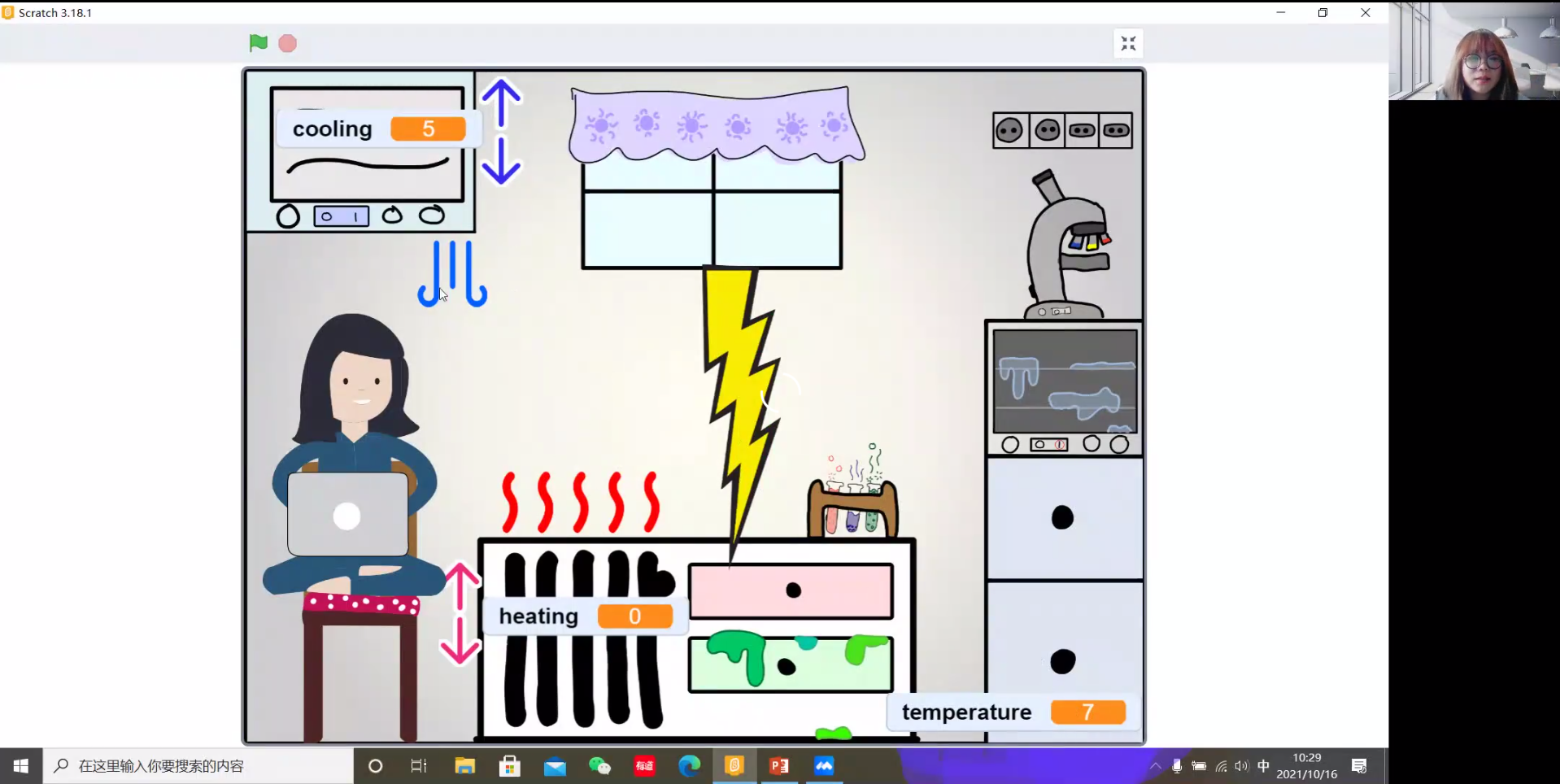 吉林大学通信工程学院博士刘嫣然作题为“‘星球大战’之外星人温度控制”的报告。刘嫣然向孩子们讲述“星球大战”,在趣味故事背景下,引入控制理论的基本知识,通过应用Scratch编程,实现对外星人温度的自动控制,让孩子们动手操作,在实际应用中理解控制。