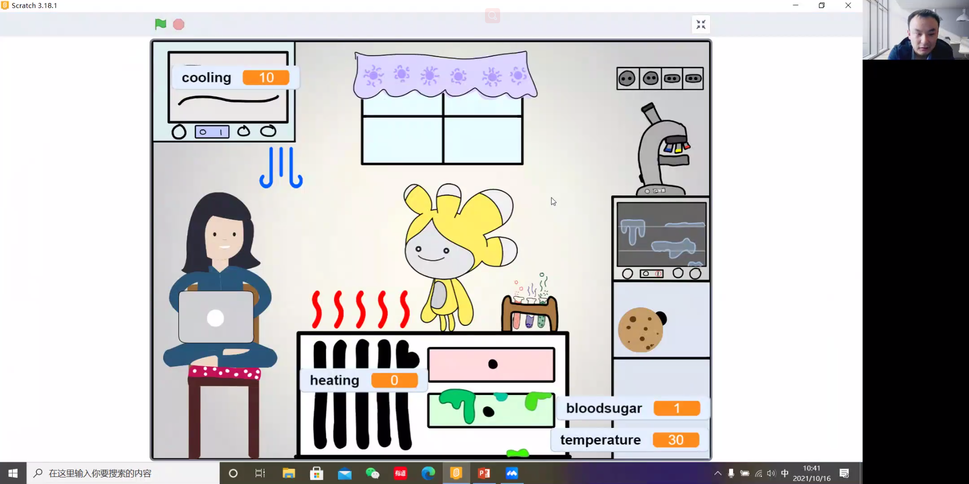吉林大学助理研究员刘俊博士作题为“‘星球大战’之外星人血糖控制”的报告。刘俊博士在上一个报告的基础上,提升了游戏中控制的难度,加强了孩子们对Scratch软件使用的熟练程度,并且结合对温度和血糖的同时控制,引出了最优控制的问题。