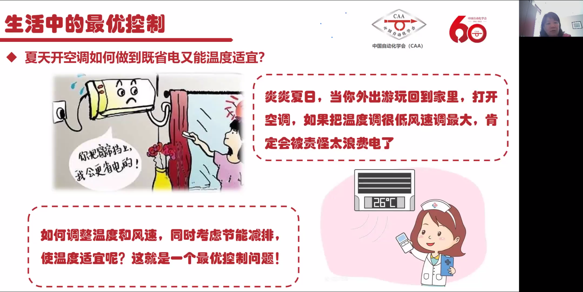 同济大学陈虹教授作题为“生活中的最优控制”的报告。陈虹教授介绍了生活中常见的最优控制事例,讲授了身边的最优问题,科普介绍了最优控制的基本概念,通过与孩子们的互动讨论,帮助孩子们了解最优控制的思想。