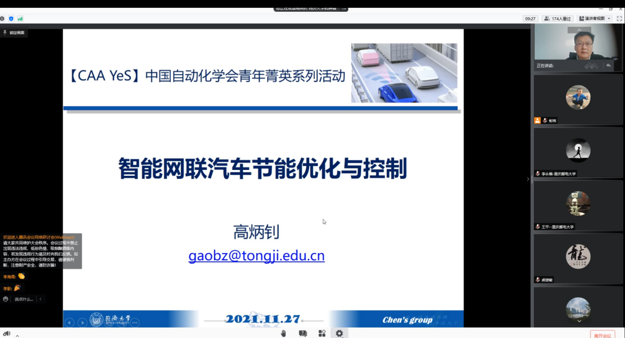 为了推进智能网联汽车领域的学术交流,由中国自动化学会主办、重庆邮电大学自动化学院等承办的主题为“智能汽车与自主协同控制”的CAA YeS论坛(西南片区),于2021年11月27日以线上形式圆满召开。重庆邮电大学自动化学院院长王平教授担任本次论坛主席,重庆邮电大学李永福教授担任本次论坛组织主席。论坛有10位优秀青年专家参加本次论坛并作报告。