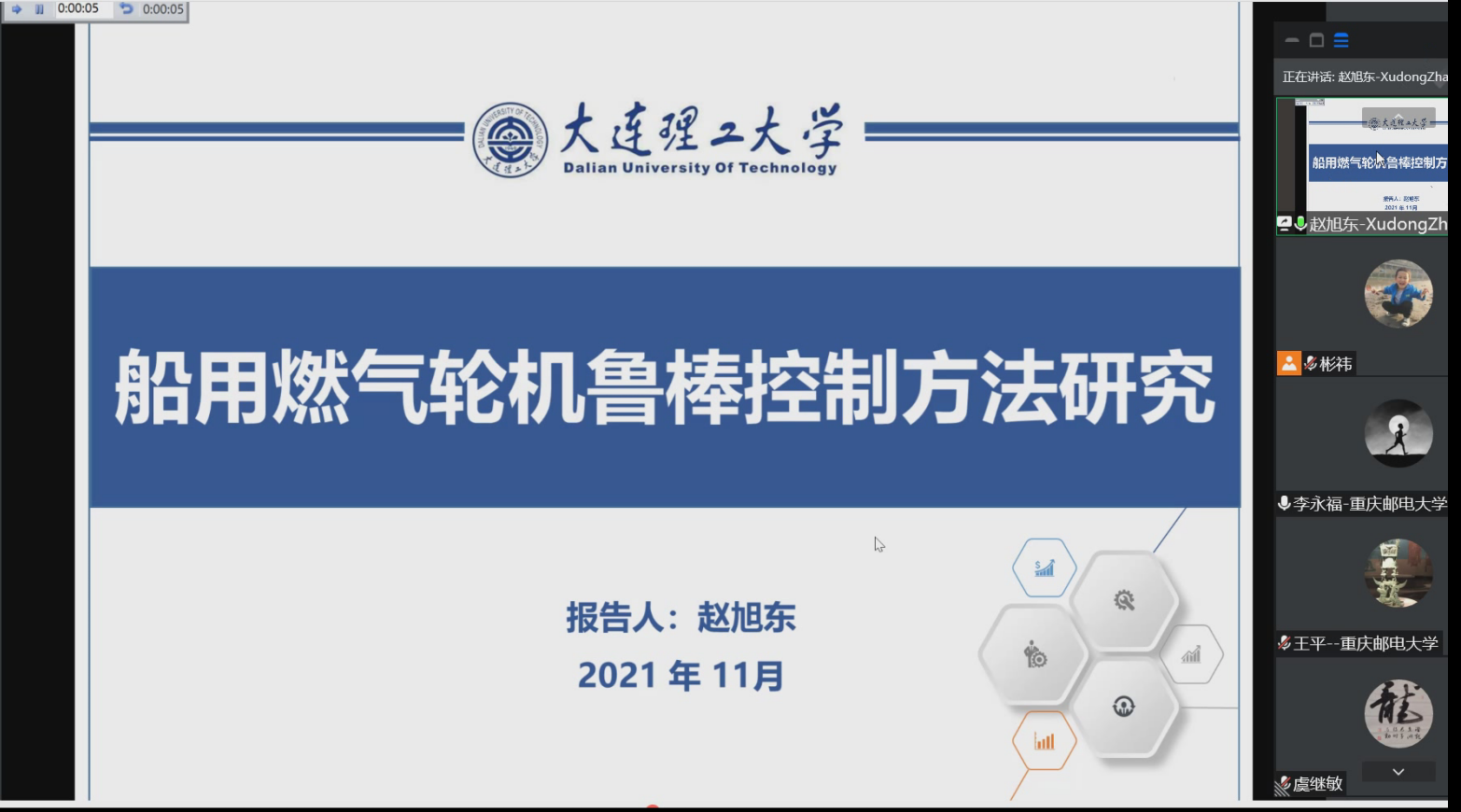 第四个报告人为来自于大连理工大学的赵旭东教授,他的报告题目为“船用燃气轮机的鲁棒控制方法研究”。报告中,以船用两轴燃气轮机为研究对象,介绍一种基于小扰动法建立LPV模型的过程。同时,不同于传统的燃气轮机控制算法,本报告搭建了一套包含稳态控制算法、过渡态控制算法和故障减速控制的整体控制框架。