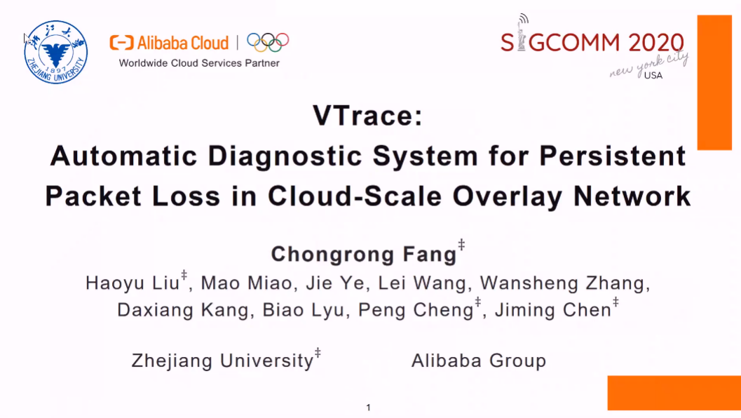 程鹏:VTrace: Automatic Diagnostic System for Persistent Packet Loss in Cloud-Scale Overlay Network