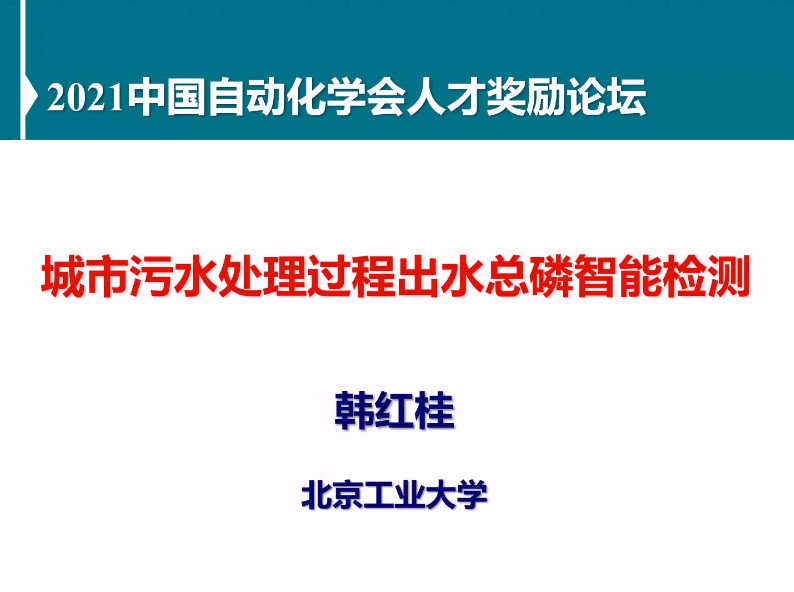 CAA青年科学家奖获得者、北京工业大学韩红桂教授作了题为“城市污水处理过程出水总磷智能特征检测”的报告,报告针对城市污水处理过程出水总磷难以实时检测的问题,基于城市污水处理过程运行数据和知识,研究数据挖掘、知识推理方法,获得了基于过程数据和知识的出水总磷智能特征检测关键技术,研制出城市污水处理出水总磷智能特征检测装置,实现了城市污水处理出水总磷的实时检测,解决了长期困扰城市污水处理行业的出水总磷实时测量难题。