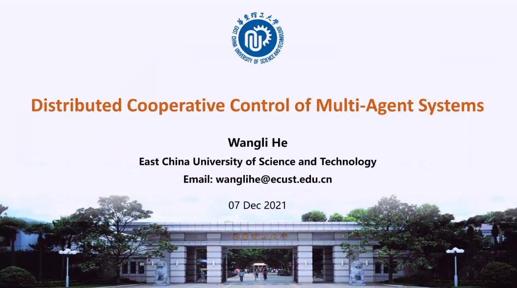 CAA青年科学家奖获得者、华东理工大学教授和望利作了题为“多智能体分布式协同控制”的报告,报告针对两个关键问题:如何在保证协同性能的同时有效降低智能体间的通讯能耗、如何设计有效的弹性协同控制策略以保证系统安全稳定运行,提出了相应的分布式协同控制算法,仿真环境下将算法成功应用到图像保密传输以及多机器人的编队。