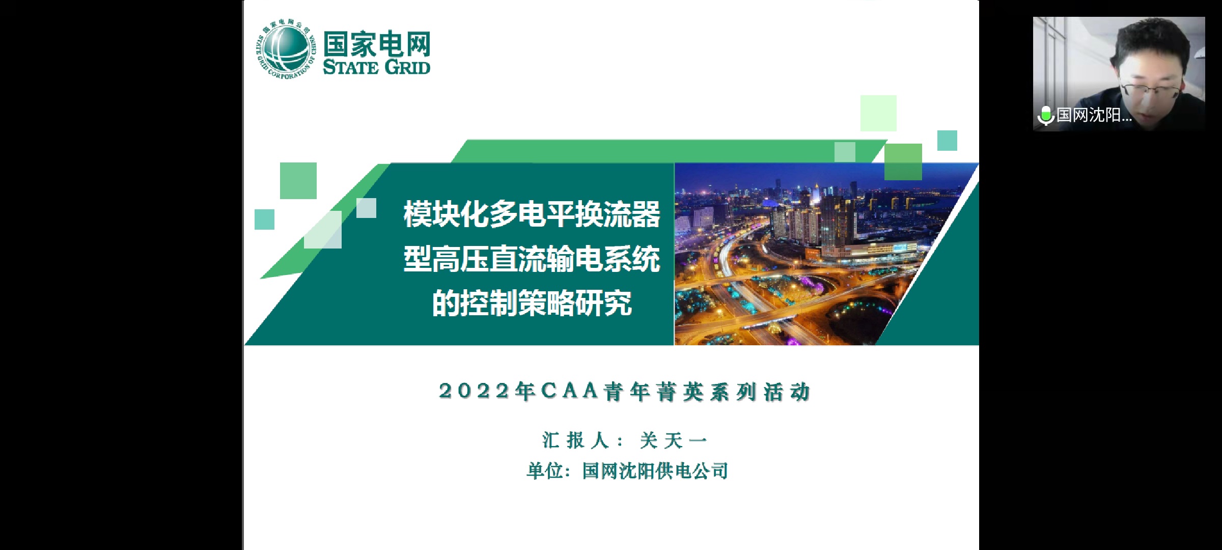 第五位报告人为来自国家电网沈阳供电公司的关天一工程师,报告题目为“模块化多电平换流器型高压直流输电系统的控制策略研究”。在实现双碳目标的过程中,发展柔性直流输电技术已成为重要研究内容。为此,报告人从稳态、暂态及系统级三个方面提出了MMC控制策略,保证了系统的运行性能及经济性。