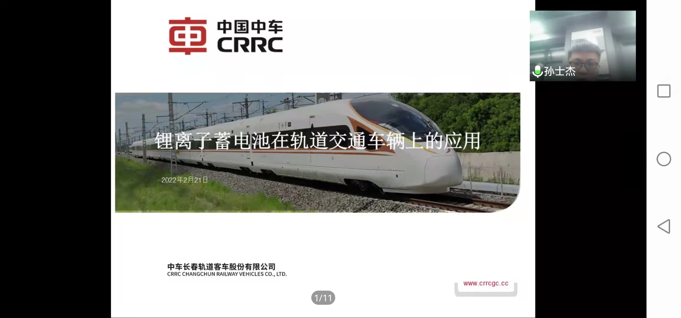 第八位报告人为来自中车长春轨道客车股份有限公司的孙士杰工程师,报告题目为“锂离子蓄电池在轨道交通车辆上的应用”。报告人主要介绍现有轨道交通车辆电池应用情况,进一步从安全性、环境适用性、可靠性等方面对锂离子蓄电池用于轨道交通机车车辆的要求进行了介绍,并探讨了该方向目前亟待解决的问题。