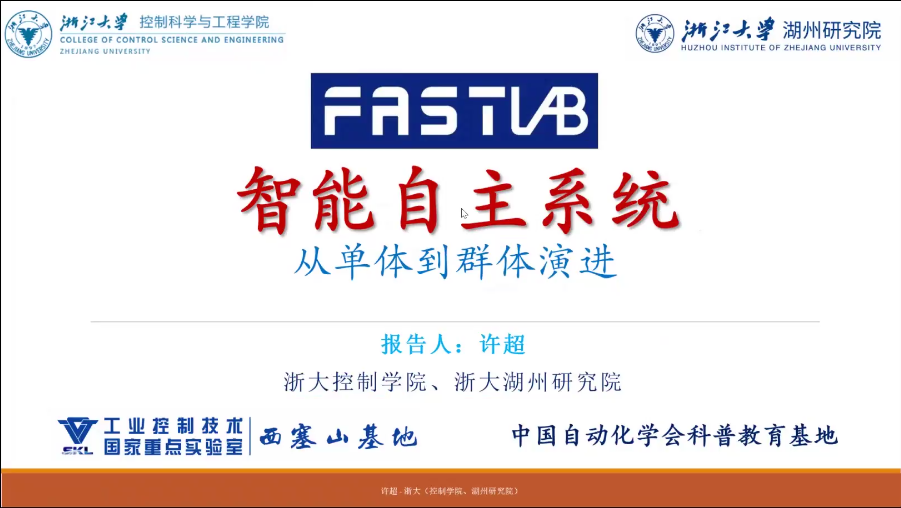 报告最后,许超教授提到浙江大学湖州研究院人工智能与机器人科普基地作为中国自动化学会科普教育基地,将创办智乎科创营,通过做一些力所能及的公益事业,以促进技术迭代,探索创业思维。