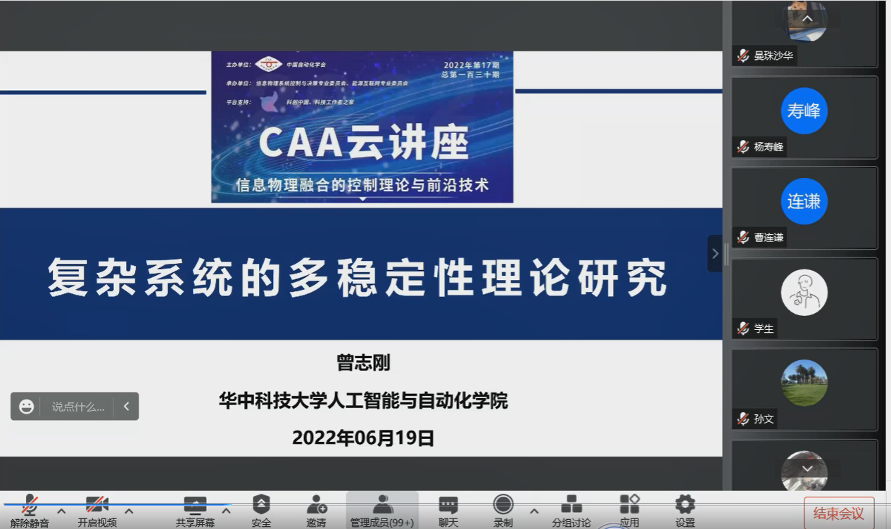 【CAA云讲座】信息物理融合的控制理论与前沿技术论坛 成功举办!