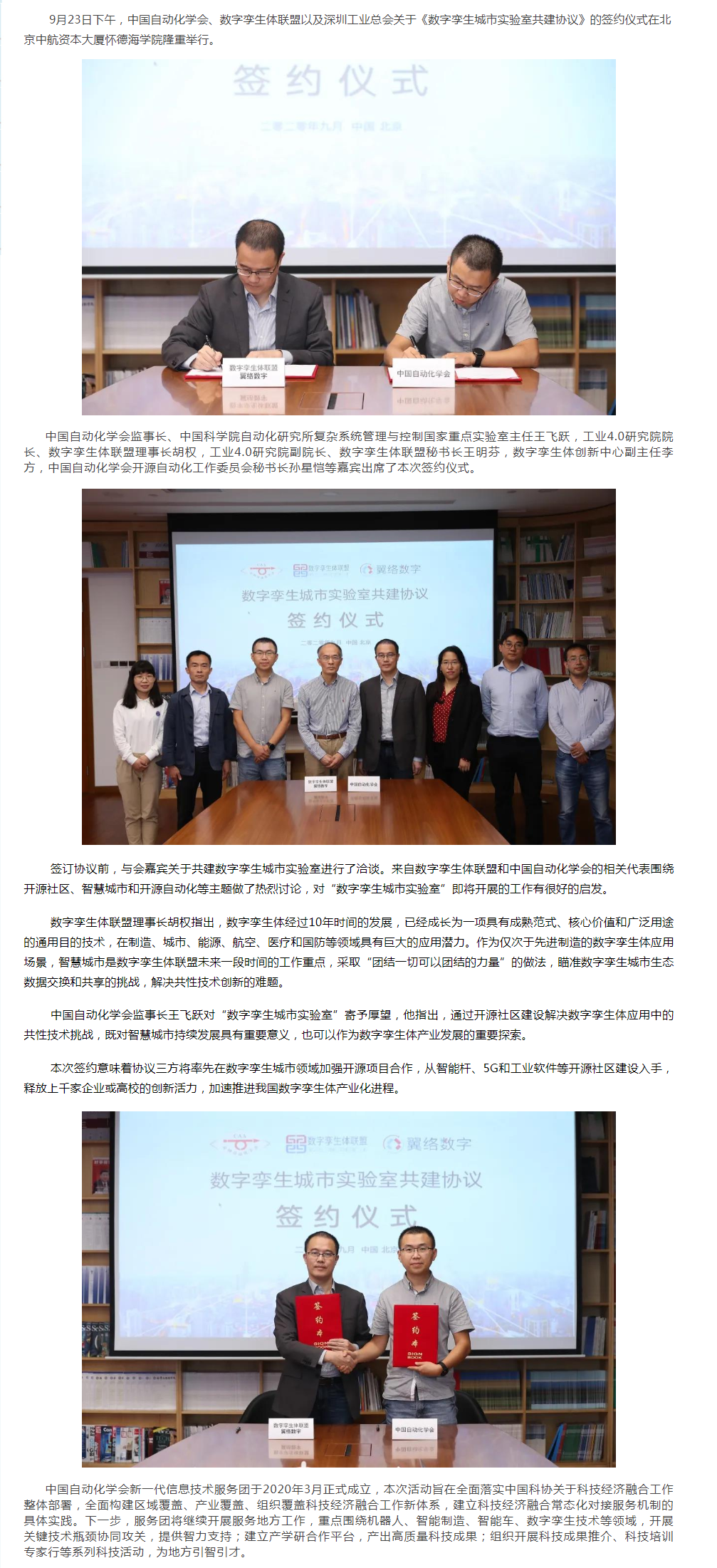 中国自动化学会、数字孪生体联盟及深圳工业总会关于共建数字孪生城市实验室签约仪式圆满举行