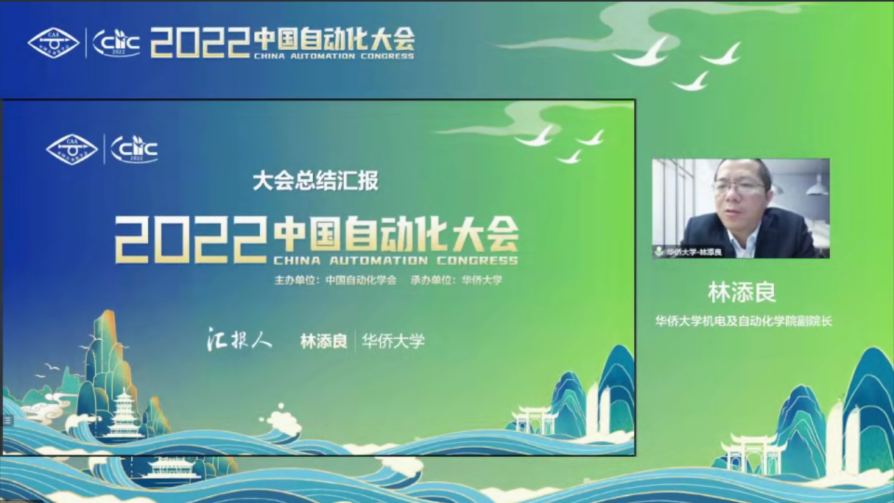 华侨大学机电及自动化学院副院长林添良作2022中国自动化大会总结,从筹备情况、现场盛况、精彩瞬间、论文接收情况等角度回顾了本场学术盛宴。
