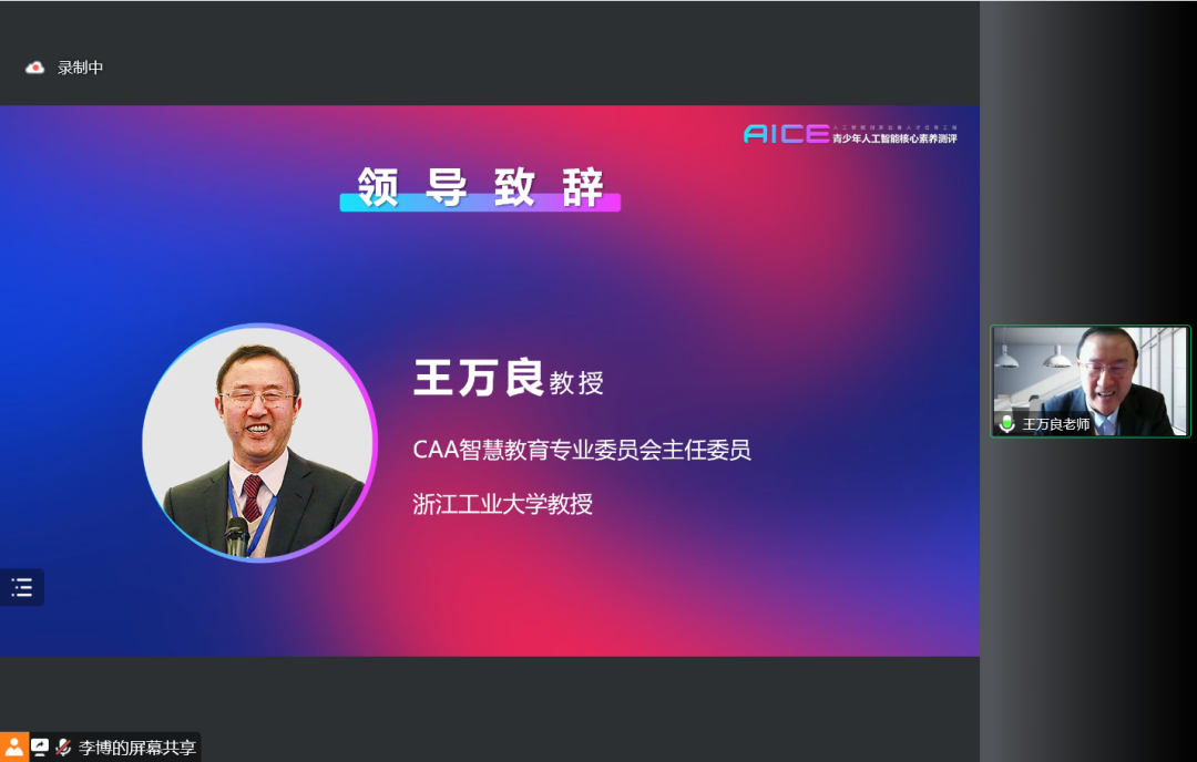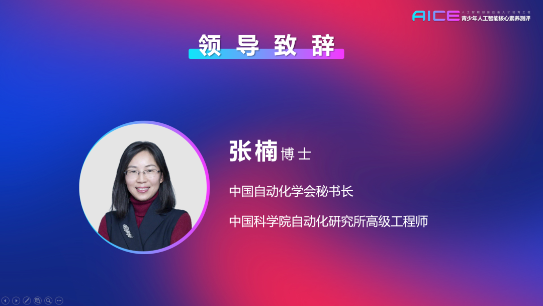 中国自动化学会普及工作委员会副主任委员、中国自动化学会智慧教育专业委员会秘书长、AICE测评工作组组长刘希未讲话