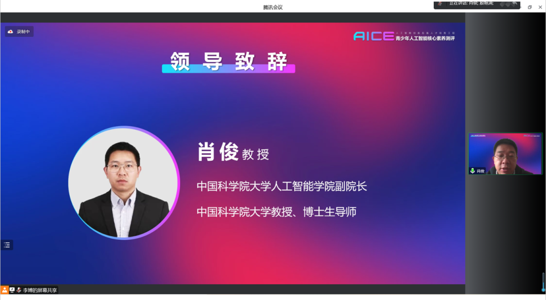中国科学院大学人工智能学院副院长肖俊教授在致辞中说,当前人工智能教育还没有特别规范化,人工智能素养测评工作的重要性不亚于人工智能教育本身。“青少年人工智能核心素养测评”的重点不在于测试我们孩子们的人工智能技术或者说水平有多高,更重要的是测评能起到很好的引导作用,引导中小学校、培训机构和广大中小学生去思考如何循序渐进地去了解和学习人工智能的基础知识和重要技能。