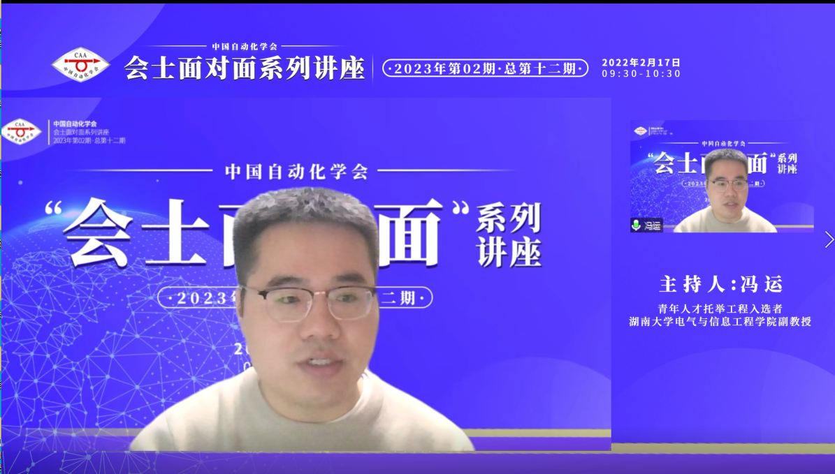 本次活动由中国科协“青年人才托举工程’入选者、湖南大学电气与信息工程学院副教授冯运主持,通过腾讯会议、CAA会议小程序、CAA官方视频号、学会微博官方账号、百家号等平台全程直播,共计近2万人次在线观看直播。