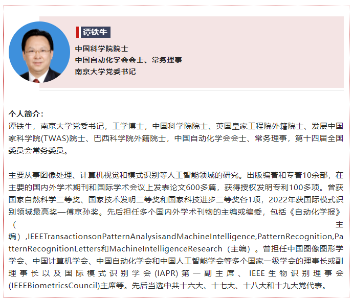 近日,第十四届全国委员会常务委员名单以及十四届全国人大常委会委员名单公布。中国自动化学会会士、常务理事,南京大学党委书记谭铁牛院士;中国自动化学会会士、监事,九三学社中央常委,上海市政协副主席钱锋院士当选政协第十四届全国委员会常务委员。中国自动化学会会士、常务理事王巍院士当选第十四届全国人民代表大会常务委员会委员。