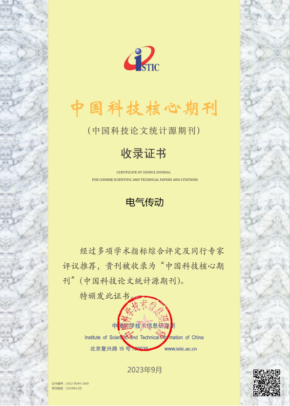 2023年最新中国科技论文统计结果发布,《电气传动》再次被收录为“中国科技核心期刊”(中国科技论文统计源期刊)。
