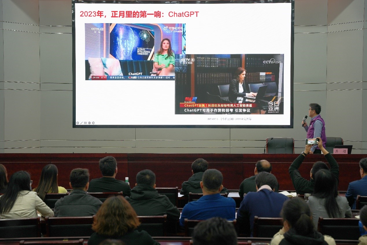 本次活动的最后一站走进济宁市任城区干部夜校,由任城区委副书记周传林主持,CAA普及工作委员会委员、清华大学日本研究中心主任助理龚超博士作题为“AIGC时代的人工智能未来与发展”的主题报告。报告通过案例分析,展示了AI如何在我们的工作、生活和学习中发挥赋能作用。