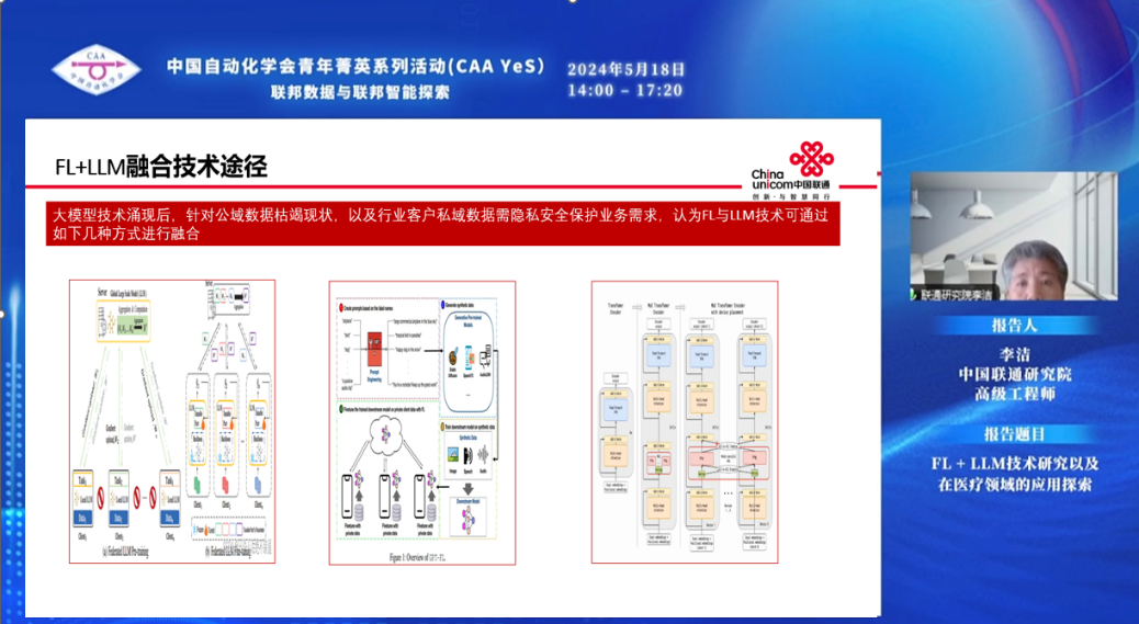 联通研究院专家李洁介绍了中国联通在联邦学习领域的研究及应用实践,提出了将LLM技术与联邦学习相融合的创新做法,并展示了其在医疗领域的应用。