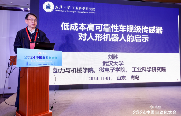 主论坛报告人、武汉大学刘胜院士进行“低成本高可靠车规级传感器对人形机器人的启示”报告