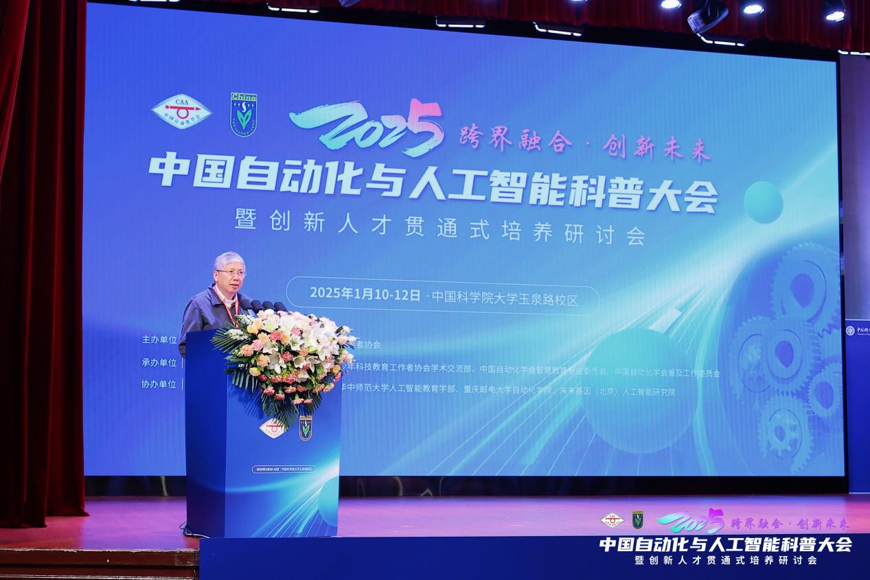 2025年1月11日-12日,2025中国自动化与人工智能科普大会暨创新人才贯通式培养研讨会在中国科学院大学玉泉路校区礼堂隆重举行。此次会议由中国自动化学会、中国青少年科技教育工作者协会联合主办,中国科学院大学人工智能学院、中国青少年科技教育工作者协会人工智能普及教育专业委员会、中国自动化学会智慧教育专业委员会、中国自动化学会普及工作委员会承办。大会以“跨界融合·创新未来”为主题,共设3场大会报告和4个专题会议,聚焦大中小学贯通式培养模式与人工智能教育的科学化、系统化发展,吸引了来自全国高校、科研院所、中小学校等专家学者、师生代表共计500余人现场参会,有效汇聚了领域产学研优质资源,为推动我国教育强国与创新型国家建设贡献了力量。