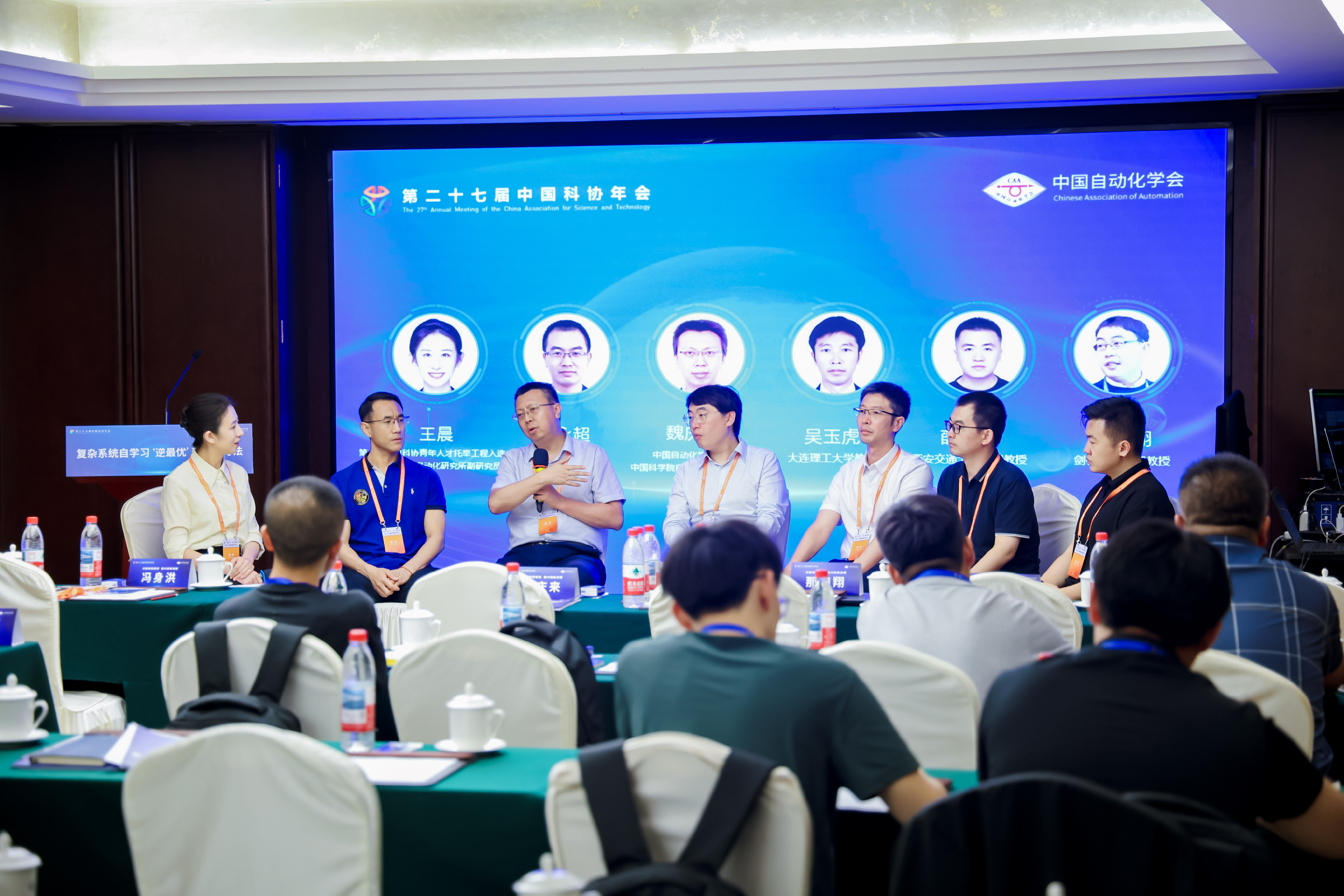 中国自动化学会理事长、中国科学院院士、中国空间技术研究院研究员杨孟飞出席。中国自动化学会特聘顾问、上海交通大学教授李少远,华北电力大学教授肖峰,中国自动化学会副监事长、安徽大学教授孙长银,中国自动化学会理事、武汉大学教授张俊作主旨报告。中国自动化学会理事、中国科学院自动化研究所研究员魏庆来,英国格拉斯哥大学教授于慧,英国剑桥大学助理教授那晓翔作专题报告。北京航空航天大学教授王卓主持报告环节。中国科协第十届青年人才托举工程入选者、中国科学院自动化研究所副研究员王晨主持圆桌讨论环节。
