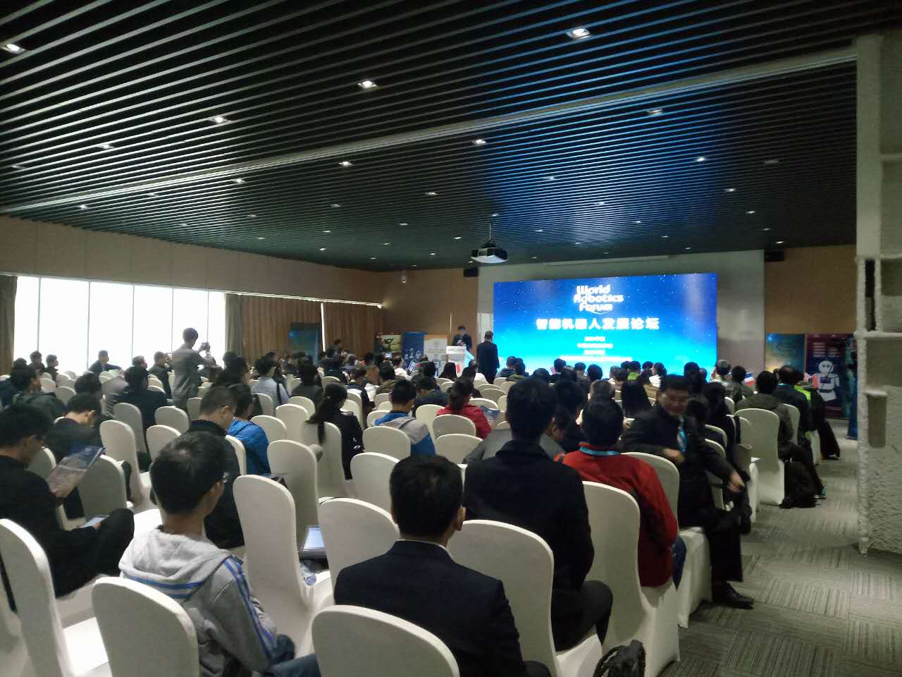 10月22日上午,由中国自动化学会(以下简称“学会”)承办,北京沃科苏机器人科技有限公司协办的2016世界机器人大会智能机器人发展论坛在北京亦创国际会展中心二层会议室AB成功召开。中科院自动化所研究员、学会副理事长兼秘书长王飞跃,普渡大学教授George Lee,芬兰阿尔托大学教授Heikki Koivo,美国科罗拉多州立大学教授Anthony Macie jewski,日本新能源产业技术综合开发机构研究员Mikihito MURAKAMI等来自高校科研院所及企事业单位共200余人参加了此次论坛。