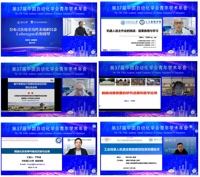 会议进行了“分布参数系统分析与控制”、“复杂控制系统网络与物理空间安全”、“可穿戴机器人人机交互与协调控制”、“多机器人系统协同决策与控制”、“多智能体系统协同控制与安全性分析”、“面向新型电力系统人工智能创新研究”6个特邀专题报告。