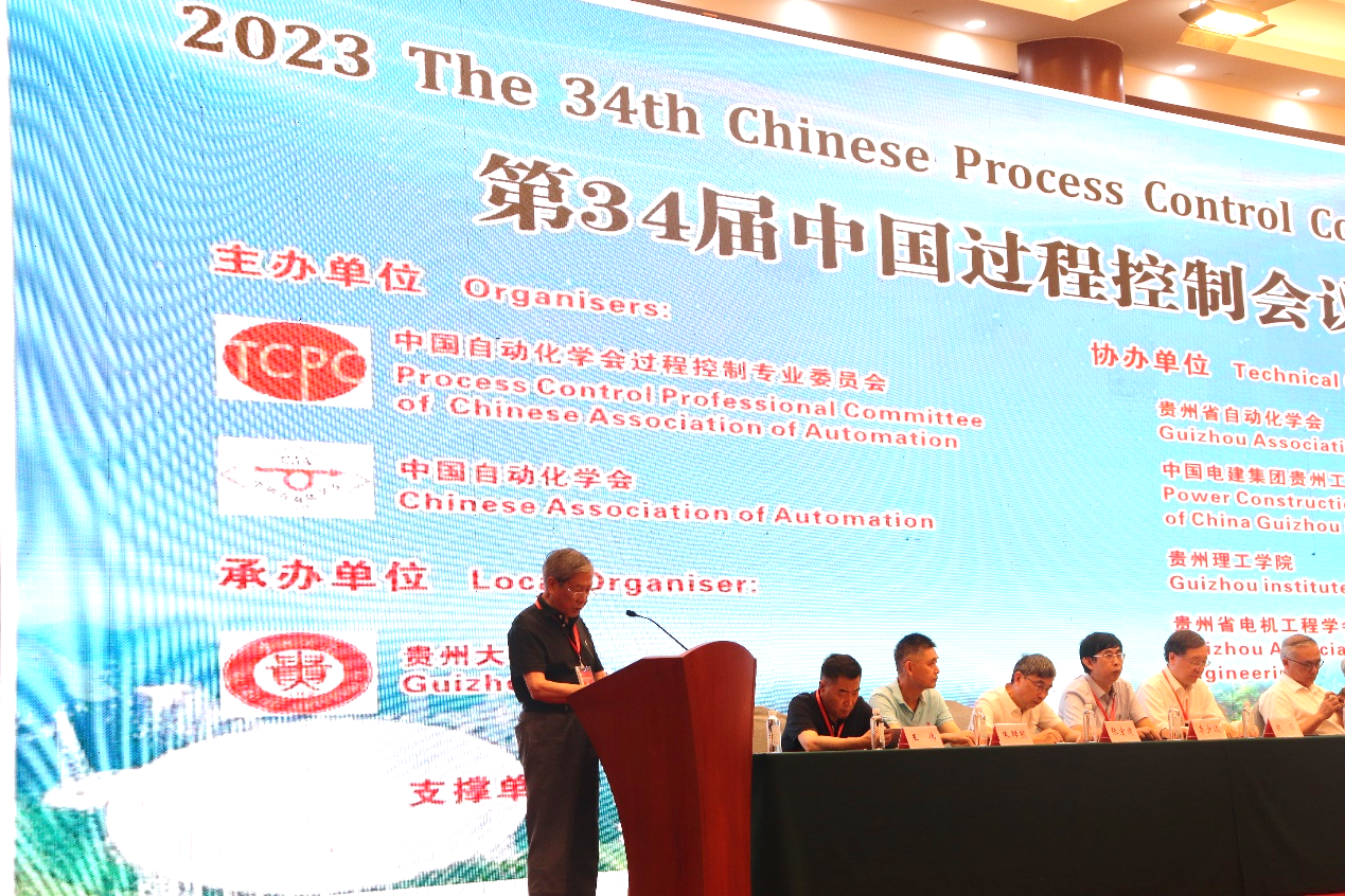 7月23日下午的闭幕式由贵州大学电气工程学院院长张靖教授主持,中国工程院院士、中国自动化学会副理事长、中国自动化学会过程控制专委会主任委员桂卫华教授作会议总结。