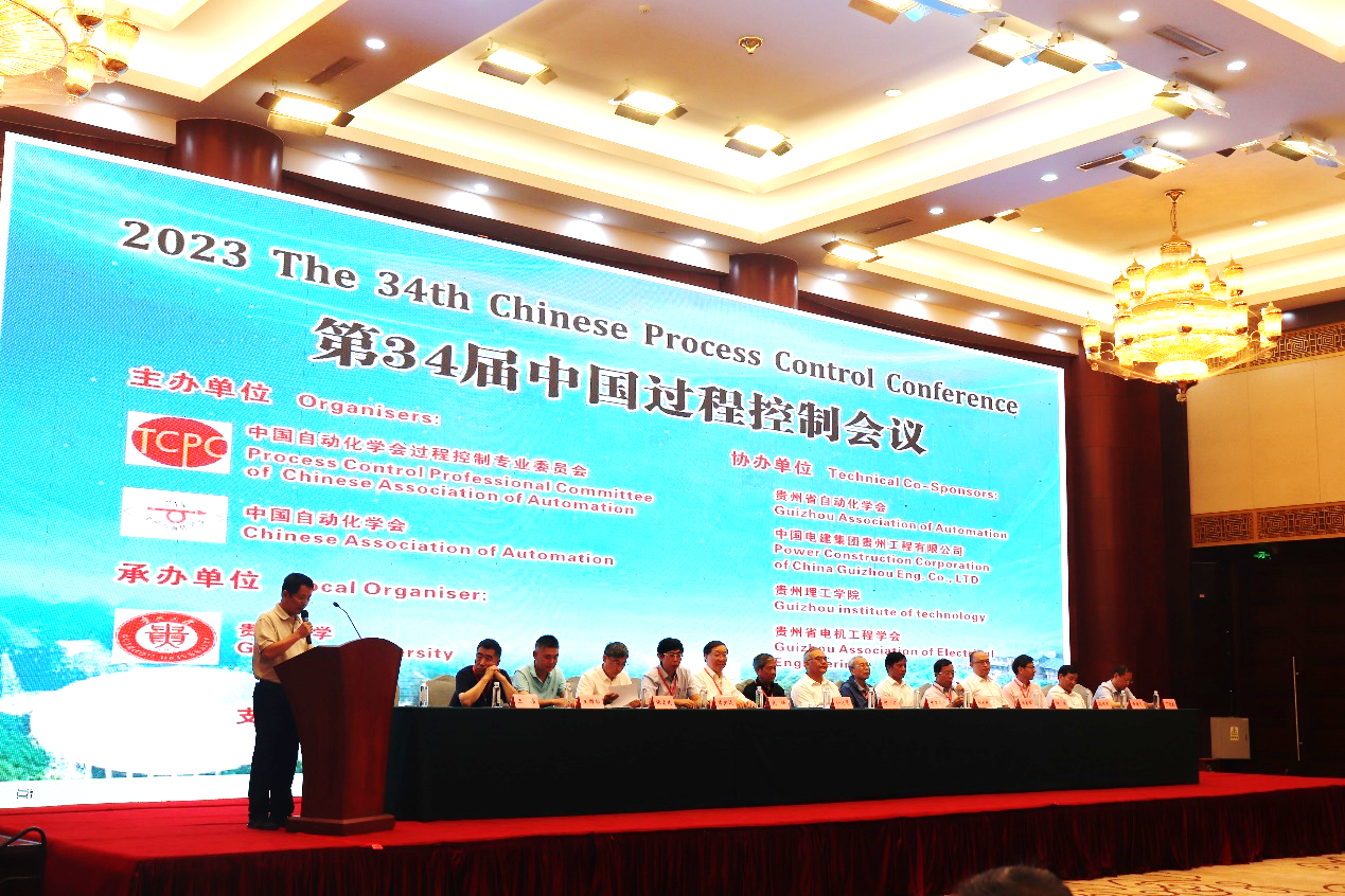 2023年7月21日-7月23日,第34届中国过程控制会议在贵阳市贵州饭店成功举办。本届会议由中国自动化学会、中国自动化学会过程控制专业委员会主办;贵州大学承办;《控制工程》编辑部、贵州省自动化学会、中国电建集团贵州工程有限公司、贵州理工学院、贵州省电机工程学会协办;贵州国台酒业集团股份有限公司、贵州刺力王生物科技有限公司、贵州金沙贡茶茶业有限公司、贵州金三叶机械制造有限公司为大会支持单位;贵州大学电气工程学院具体负责会议的筹备及组织工作。中国工程院院士孙优贤、桂卫华、钱锋;中国自动化学会副理事长李少远;大会总主席,中国工程院院士唐立新等出席会议。来自清华大学、上海交通大学、中南大学、浙江大学等100余所高校、科研单位、企业的近550名专家学者齐聚一堂,分享最新成果,交流科研经验,探讨研究热点,共襄学术盛宴。