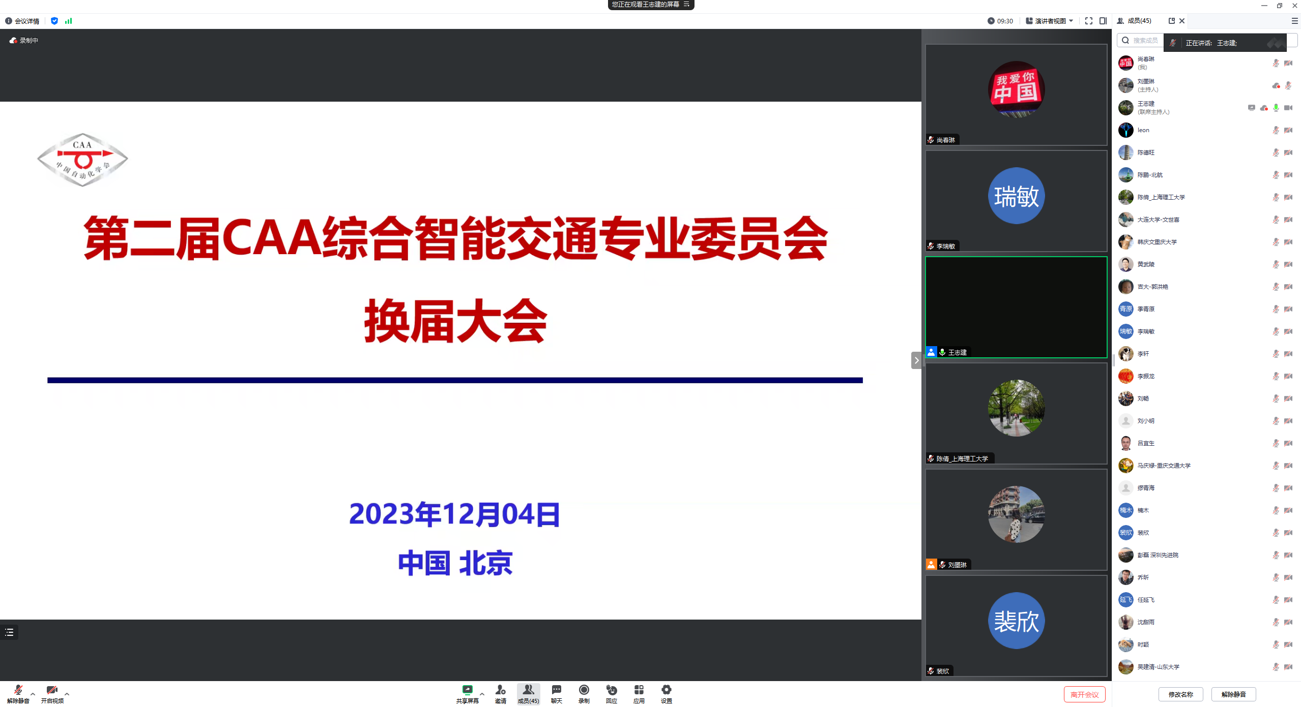 2023年12月4日,中国自动化学会综合智能交通专业委员会换届会议在北京成功召开。中国自动化学会张楠秘书长、第二届全体候选负责人及候选委员出席会议。