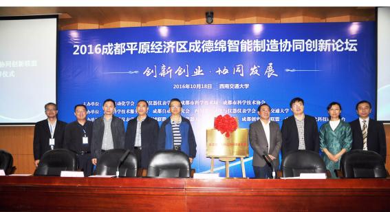 为推动成德绵智能制造与机器人领域协同创新,促进科技成果转化和产业转型升级。2016年10月18日,由中国自动化学会、中国仪器仪表学会、成都市科学技术局、成都市科学技术协会联合主办,成都科学技术服务中心、成都自动化研究会、四川省自动化与仪器仪表学会、西南交通大学承办的“2016成都平原经济区成德绵智能制造协同创新论坛暨成果推介会”在西南交通大学犀浦校区隆重召开。来自成都平原经济区的智能制造与机器人相关领域的专家、学者、企业家和科技工作者约300余人参加。