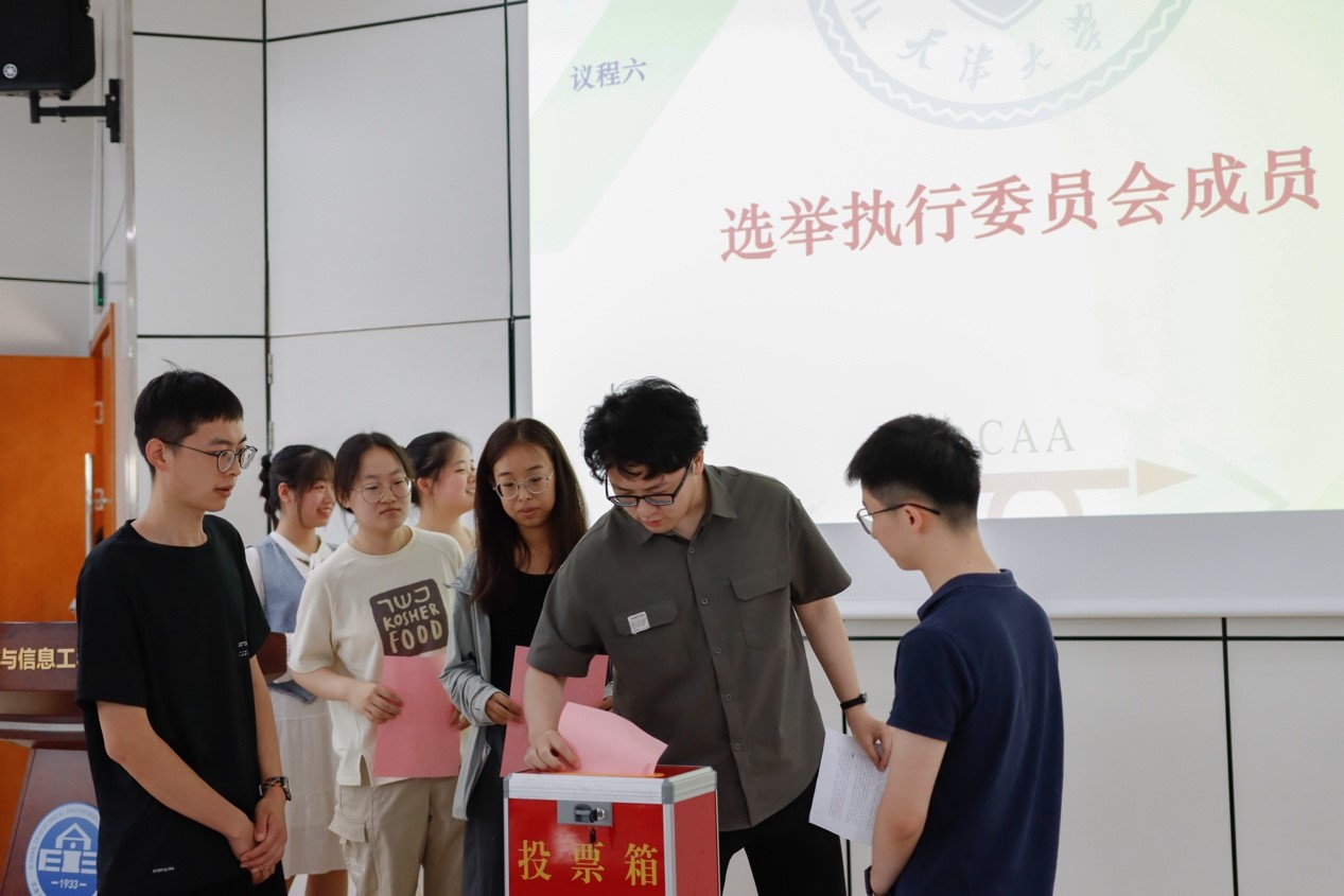 秉承公平、公正、公开的原则,大会组织中国自动化学会学生代表投票选举中国自动化学会天津大学学生分会执行委员会成员。统票结束后,总监票人宣读选举结果,院长谭超教授公布中国自动化学会天津大学学生分会指导委员会和第一届执行委员会名单。