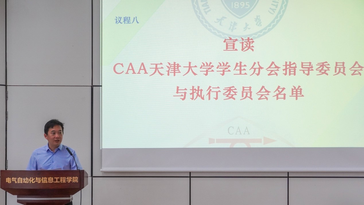 会议伊始,中国自动化学会会士、副理事长王成红研究员致开幕辞,明确中国自动化学会天津大学学生分会的成立宗旨,鼓励自动化学子积极参与学术与科研活动,为中国自动化学会和中国自动化领域作出更大的贡献。随后,中国自动化学会秘书长张楠宣读《关于同意CAA天津大学学生分会召开成立大会的批复》,并宣读候选人名单。最后,天津大学电气自动化与信息工程学院院长谭超作为院领导致辞,明确这次大会的主要任务和分会建设,表示学院将对中国自动化学会活动大力支持,并对中国自动化学会天津大学学生分会的未来发展寄予厚望。
