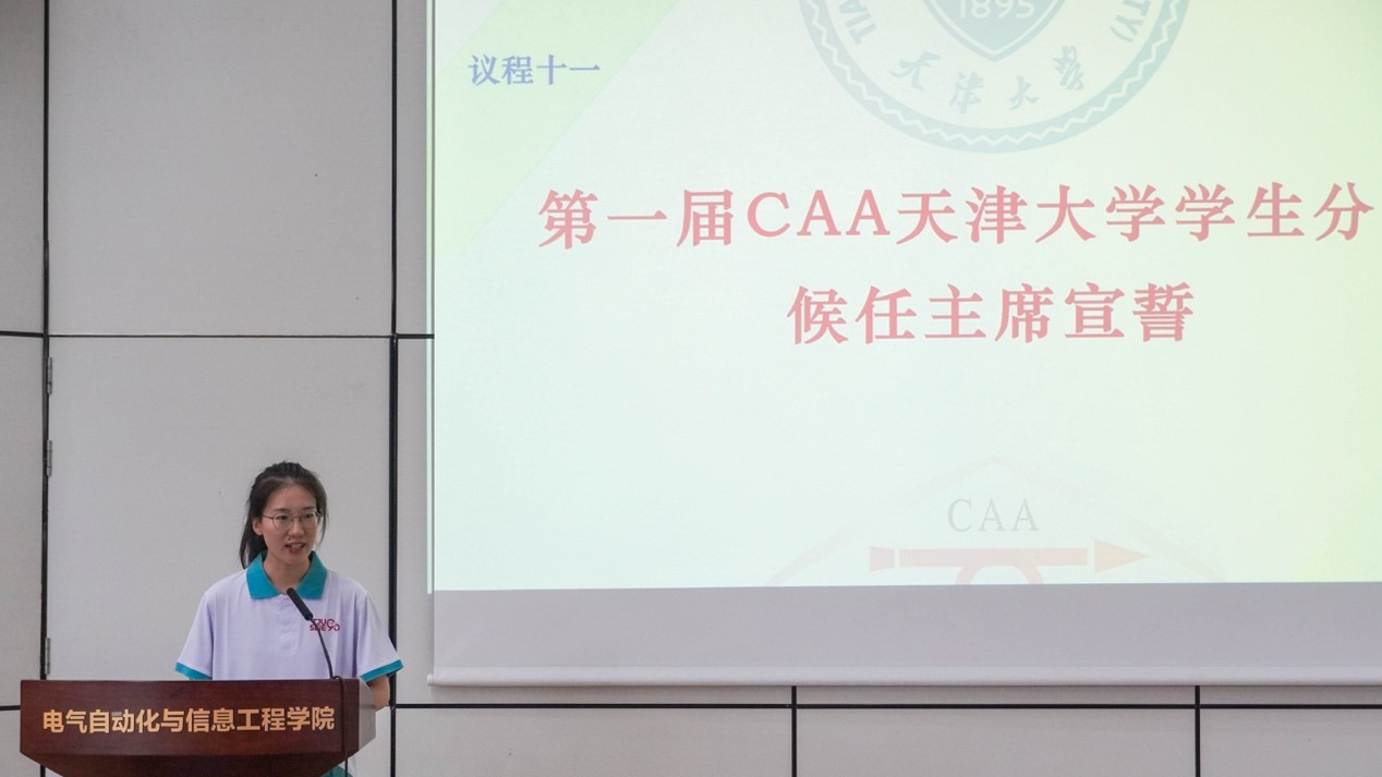 首届中国自动化学会天津大学学生分会候任主席高静宇进行就职宣誓