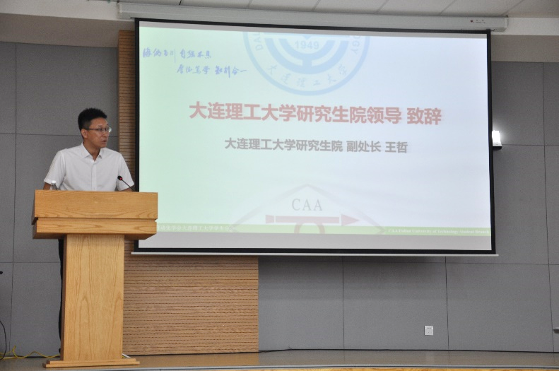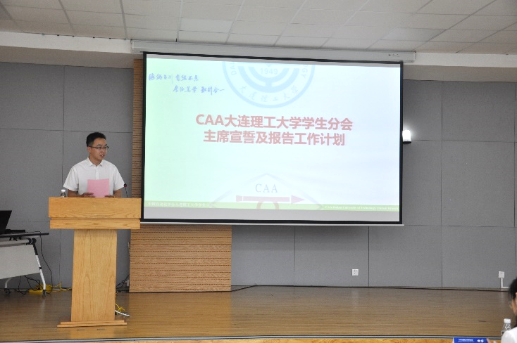 仪式完毕,第一节中国自动化学会大连理工大学学生分会主席孙翀贻进行就职宣誓,并报告CAA大连理工大学学生分会工作计划。
