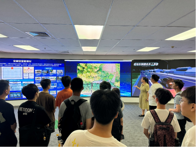 在中汽数据有限公司张森老师的引领下,同学们首先参观了“交通安全数智化”展厅,深入了解中汽数据有限公司在交通安全领域的数字化与智能化的建设成果和解决方案,听取了智慧装备、智能分析等技术的相关讲解。