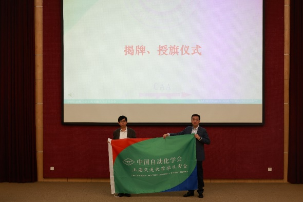随后,中国自动化学会副理事长李少远和上海交通大学自动化系主任杨博进行了揭牌和授旗仪式,并为中国自动化学会上海交通大学学生分会指导委员会与执行委员会成员颁发聘书。