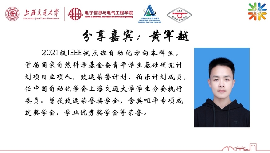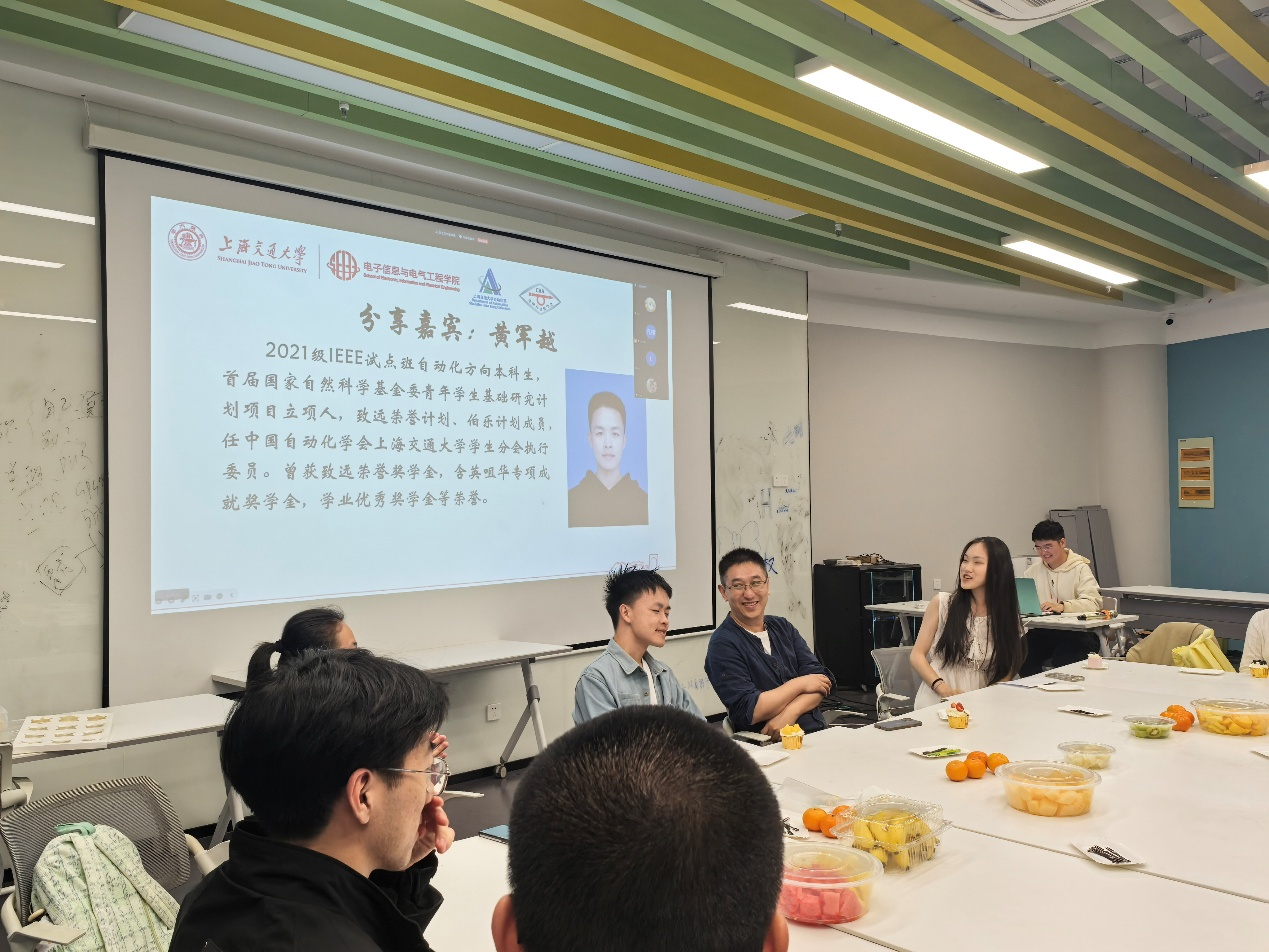 活动邀请到上海交通大学自动化系黄晓霖教授和2021级优秀本科生黄军越分享。本次活动以轻松的茶话会形式展开,氛围融洽,参会学生就科研规划与职业发展中的困惑向老师和学长提问,嘉宾们逐一耐心解答,为大家献上了一场学术与职业规划的盛宴。