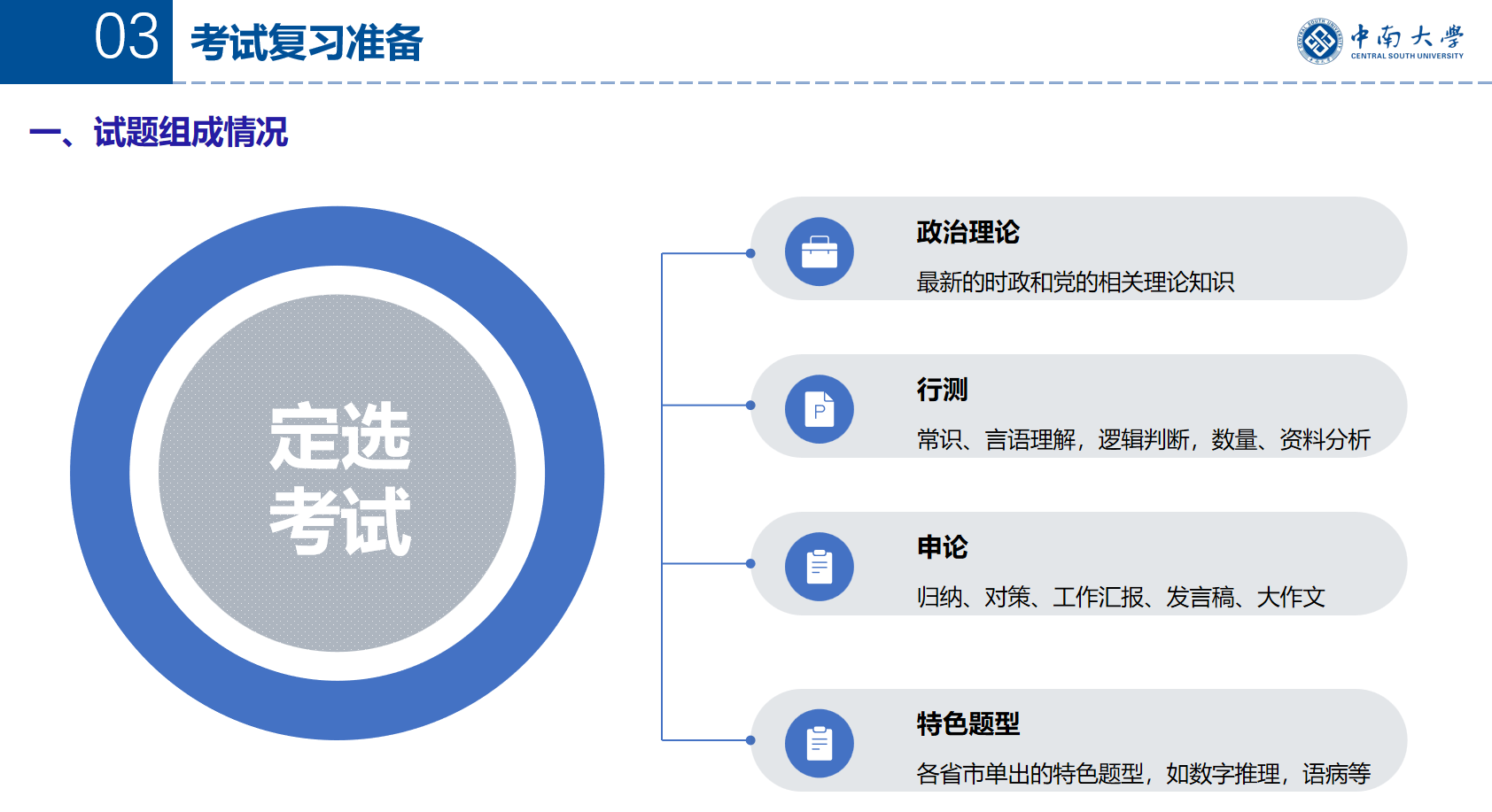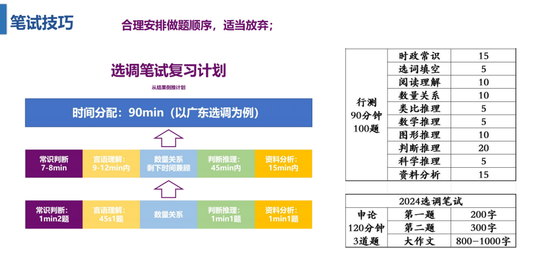 随后,卢浩同学为大家带来了“公务员选调分享”。他详细介绍了公务员、选调生以及事业编的选拔流程,包括报名条件、校内选拔、笔试、面试、体检与考察等各个环节。此外,他还结合自己的备考经历,分享了行测和申论的备考策略,包括做题顺序与时间分配、各模块的复习重点等。